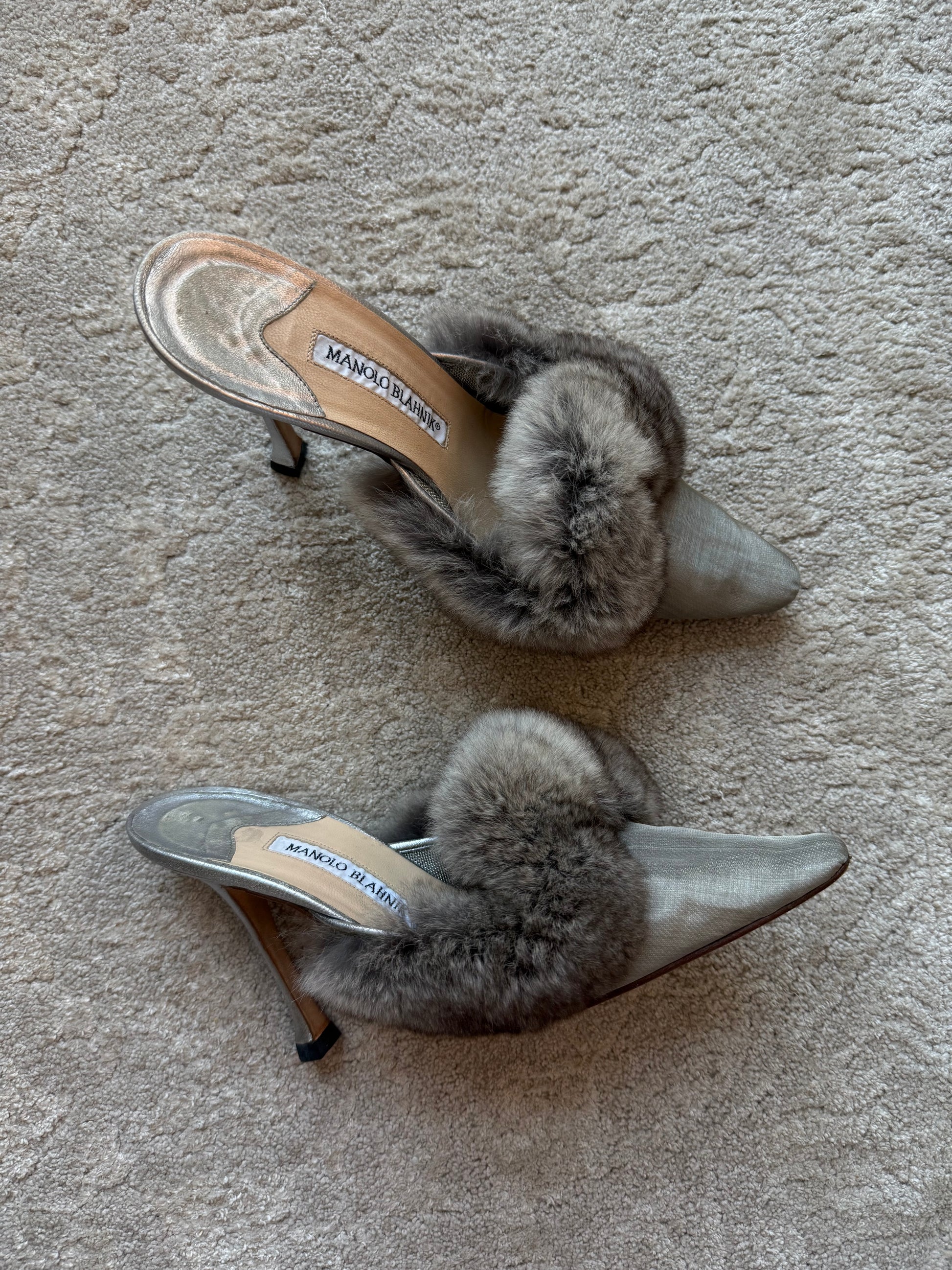 Manolo Blahnik Fur Trim Mules Size 7